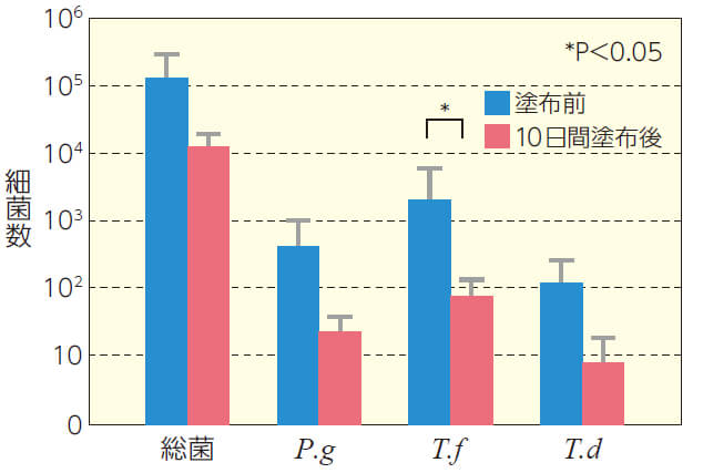 歯膜剤塗布前後の歯周病原因菌の増殖抑制効果実験(in vivo 実験)